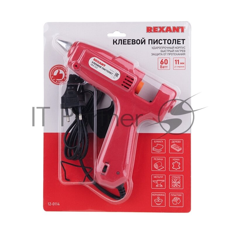 Пистолет клеевой Rexant, Ø 11 мм, 60 Вт {12-0114}