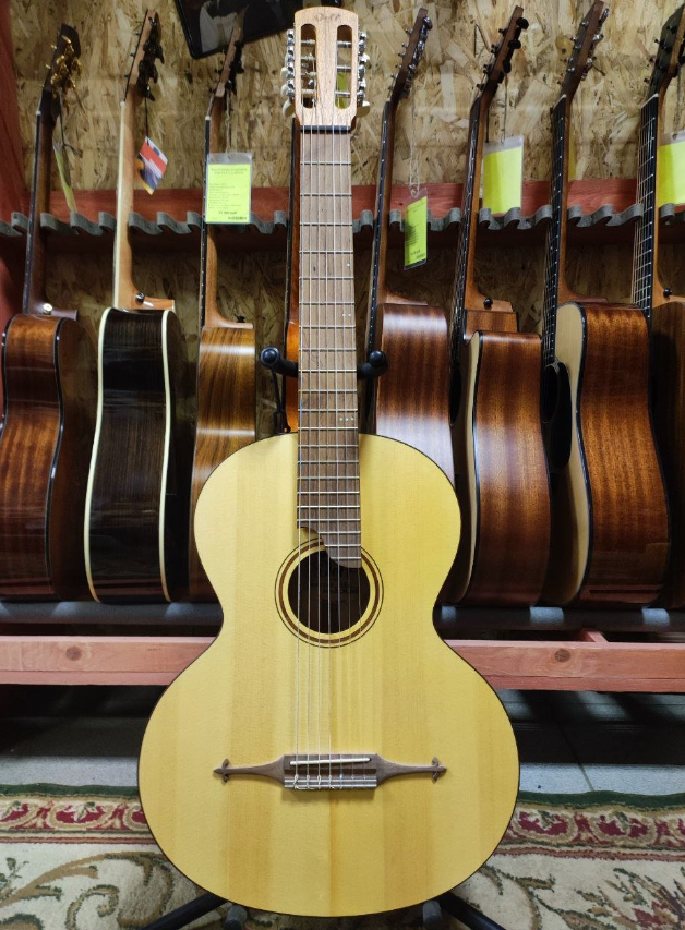 | Отзыв: | Три высокие струны — нейлоновые, остальные 4 струны — металлические. С нейлоновыми струнами звучит звонче, чем другие инструменты звучат с нейлоновыми струнами, но всё же со звучанием металлических струн не сравнить! Купил относительно недорогие тонкие никелированные струны (Ernie Ball 2623 9-52), поставили — и с ними гитара зазвучала по-настоящему!