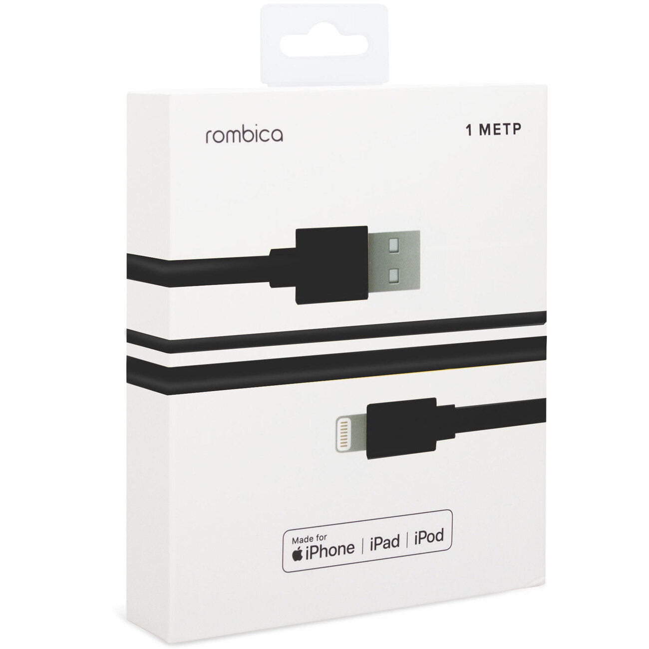 Кабель ROMBICA Digital MR-01 Black, USB - Apple Lightning, MFI (лицензия Apple), плоский, ПВХ, 1м, чёрный