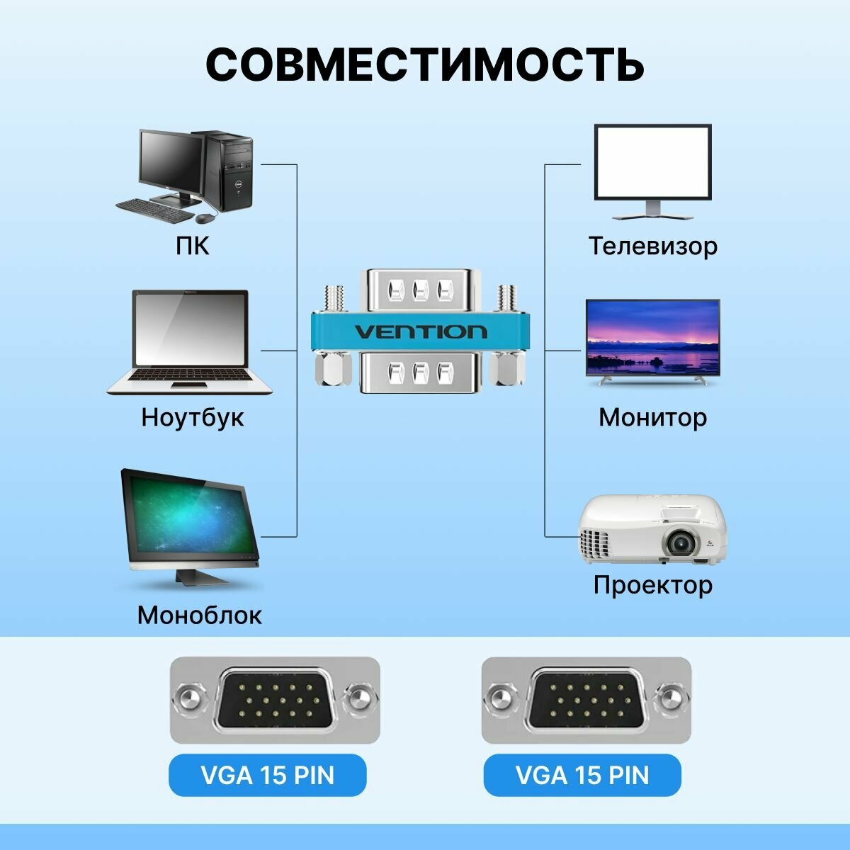 Адаптер-переходник Vention VGA 15M/VGA 15M интересное: