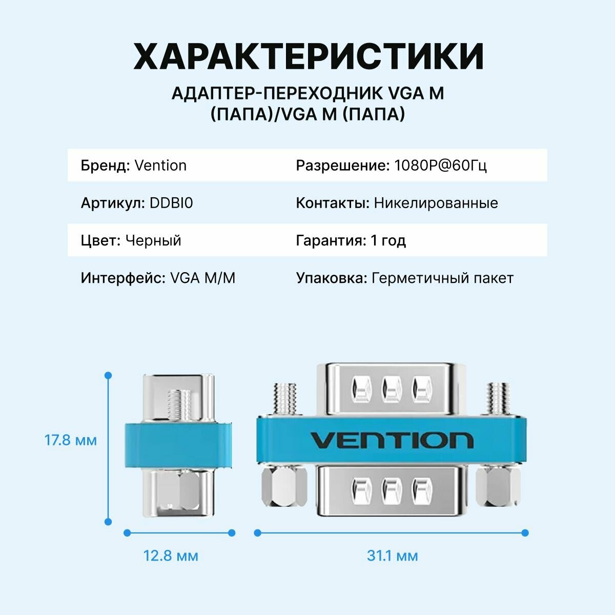 Переходник VENTION адаптер VGA 15M/ VGA 15M арт.DDBI0