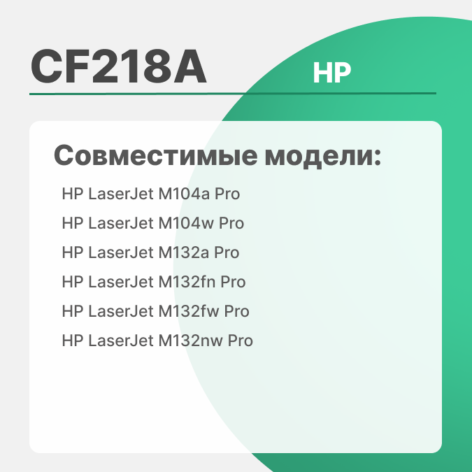 | Совместимые принтеры | HP LaserJet M104a Pro, HP LaserJet M104w Pro, HP LaserJet M132a Pro, HP LaserJet M132fn Pro, HP LaserJet M132fw Pro, HP LaserJet M132nw Pro |