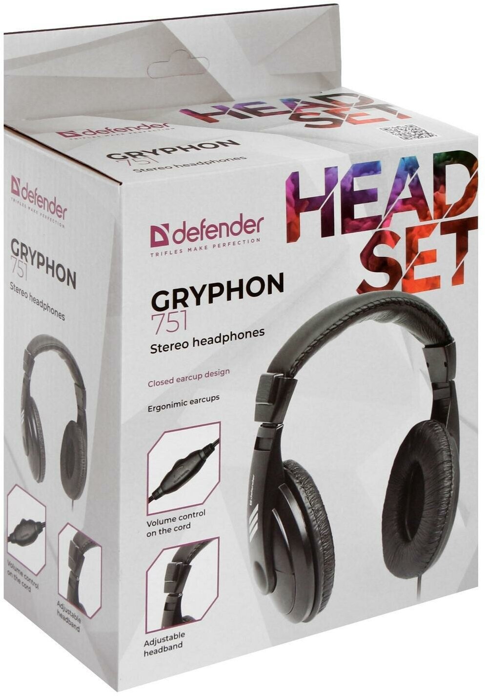 Defender Наушники накладные Gryphon 751 черный, кабель 2 м 63751