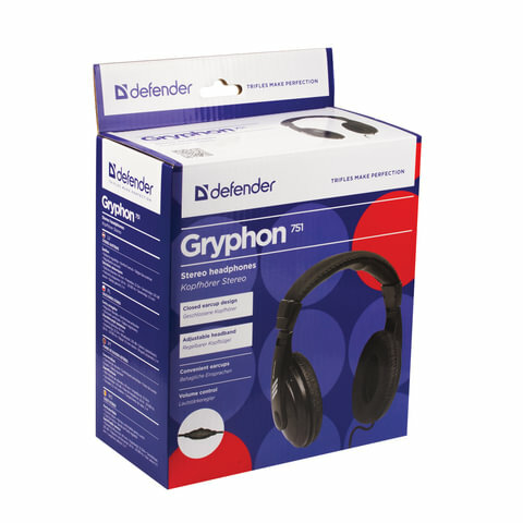 Defender Наушники накладные Gryphon 751 черный, кабель 2 м 63751