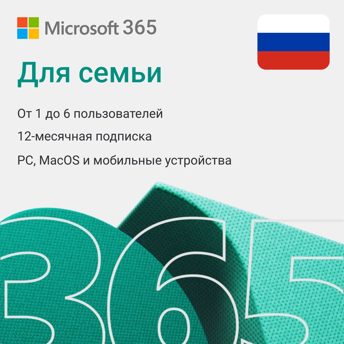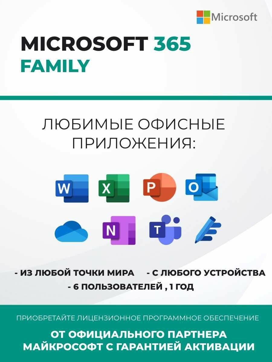 Подписка Microsoft 365 для семьи (12 месяцев, электронный ключ, 6GQ-00084, Office 365) интересное: