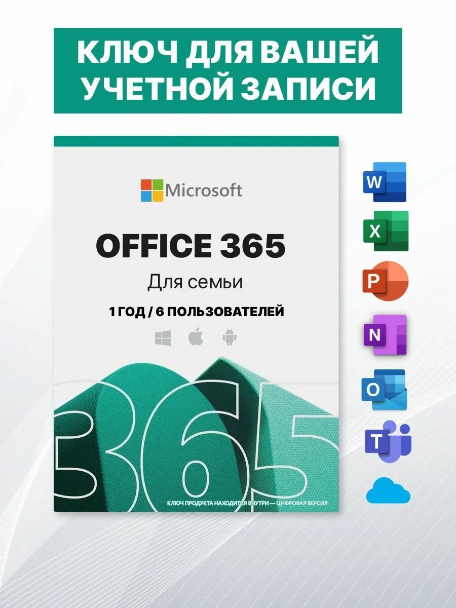 Купить Подписка Microsoft 365 для семьи (12 месяцев, электронный ключ, 6GQ-00084, Office 365)