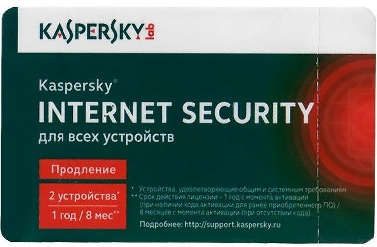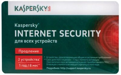 Карта продления лицензии на Kaspersky Internet Security на 2 ПК на 1 год (9093) .