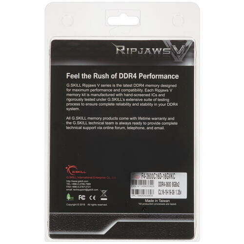 Оперативная память 16Gb DDR4 3600MHz G.Skill Ripjaws V (F4-3600C16D-16GVKС) (2x8Gb KIT)
