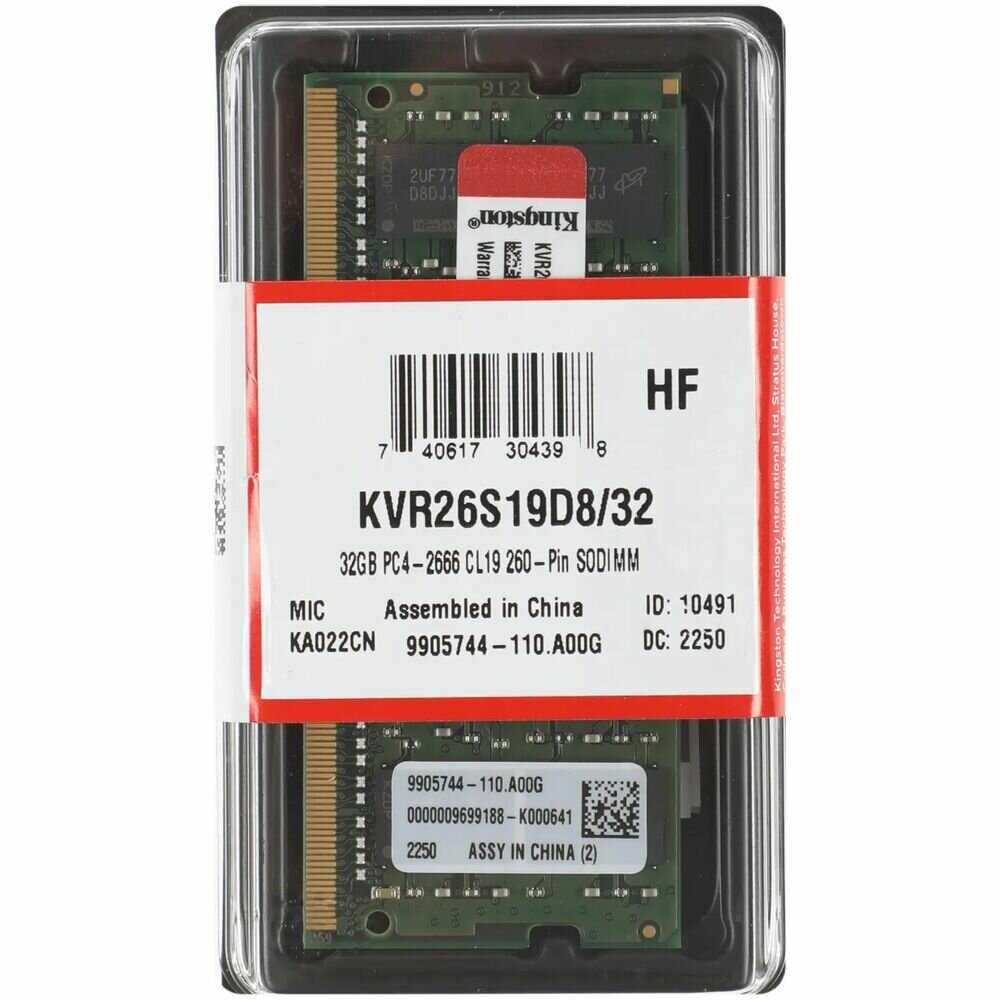 Оперативная память KINGSTON SODIMM 32GB 2666 MHz DDR4 (KVR26S19D8/32)