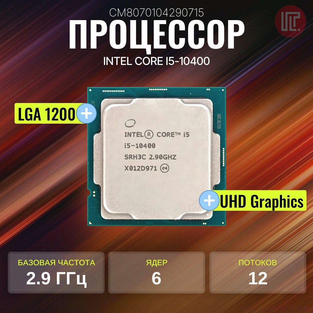 Процессор Intel Original Core i5 10400 Soc-1200 (cm8070104290715s Rh3c) (2.9GHz/Intel UHD Graphics 6
