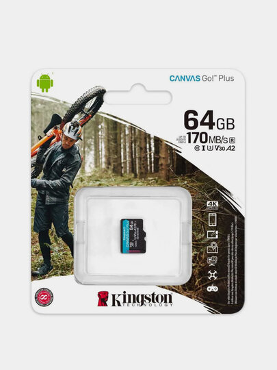 Купить Карта памяти KINGSTON micro SDXC 64Gb Canvas Go Plus UHS-I U3 A2 (170/70 MB/s)
