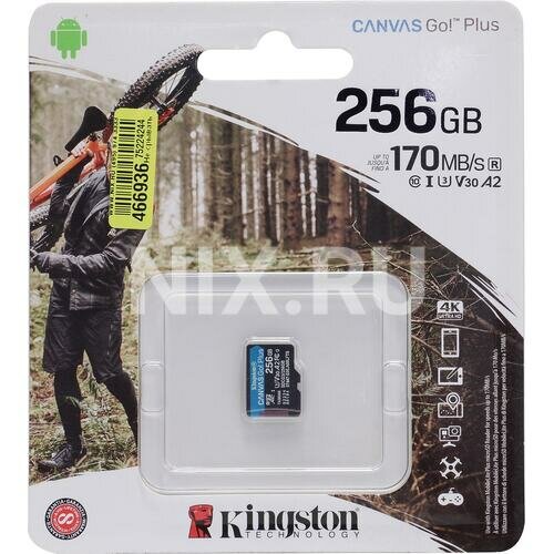 Карта памяти Kingston CANVAS Go! Plus - SDCG3/256GB - microSDXC UHS-I, U3, V30, A2 - 170/90МБ/с без адаптера