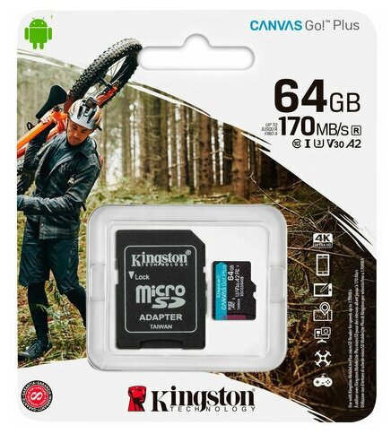 Карта памяти Kingston Canvas Go! Plus microSDXC UHS-I Cl10 +ад, SDCG3/64Gb, 1 шт.