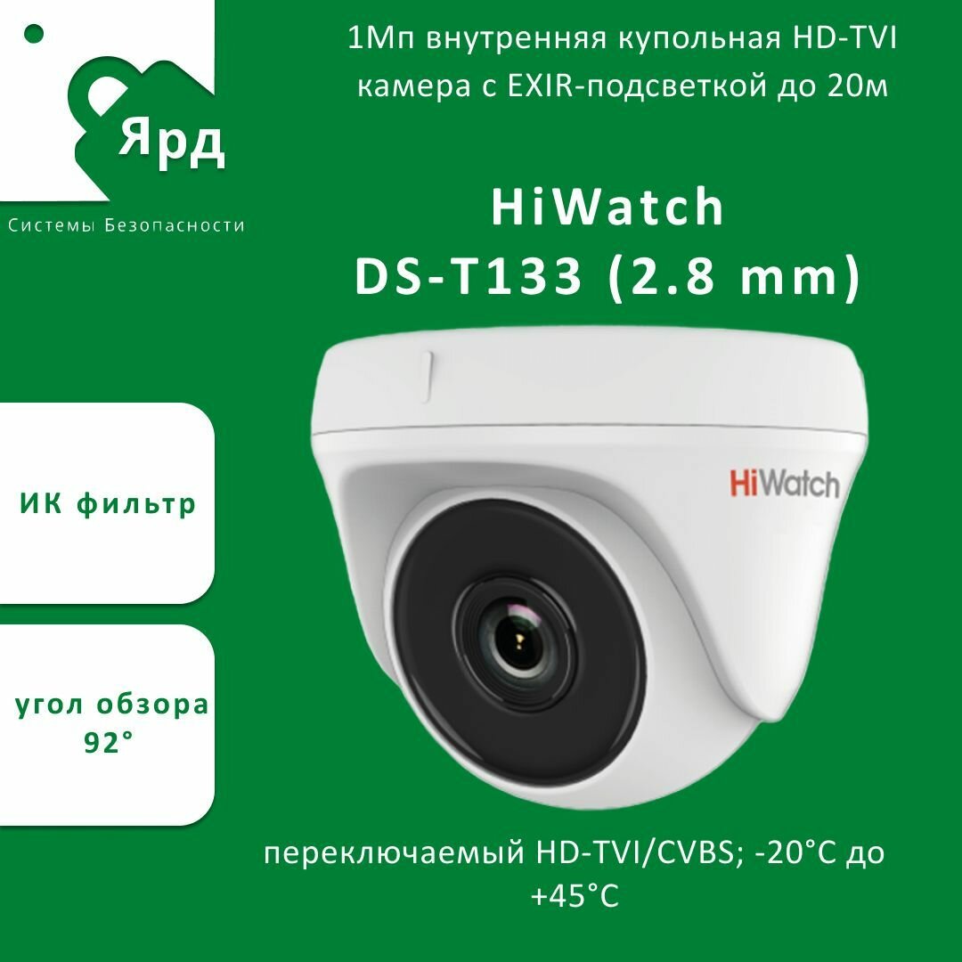 Видеокамера HD-TVI гибридный 1Мп уличная купольная с ИК-подсветкой до 20м (2.8мм) DS-T133 (2.8 mm), HIWATCH 300612187 (1 шт.)