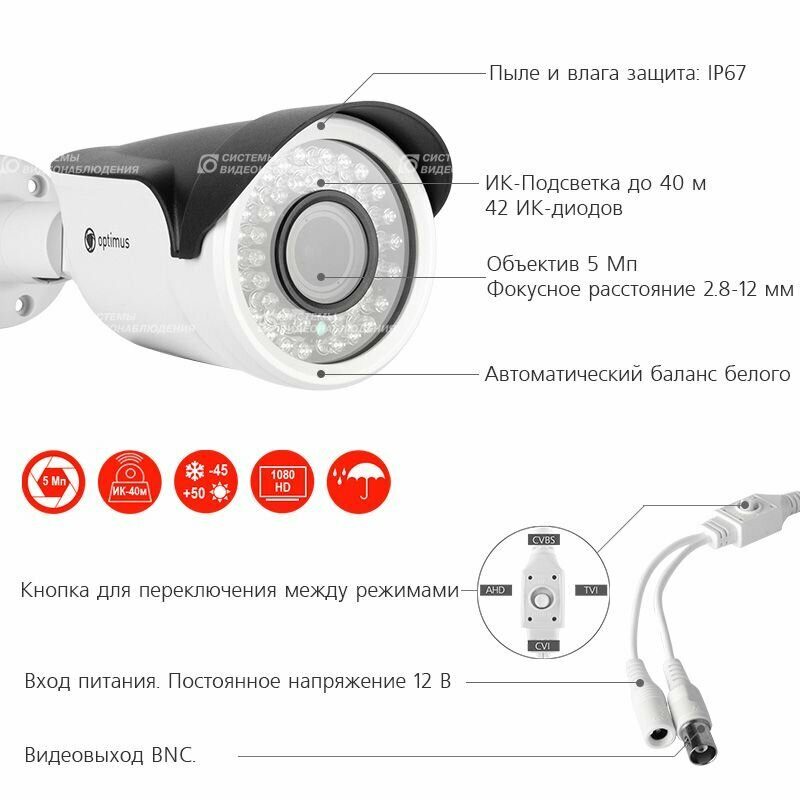 Цилиндрическая AHD Камера видеонаблюдения Optimus AHD-H015.0(2.8-12)_V.2 интересное: