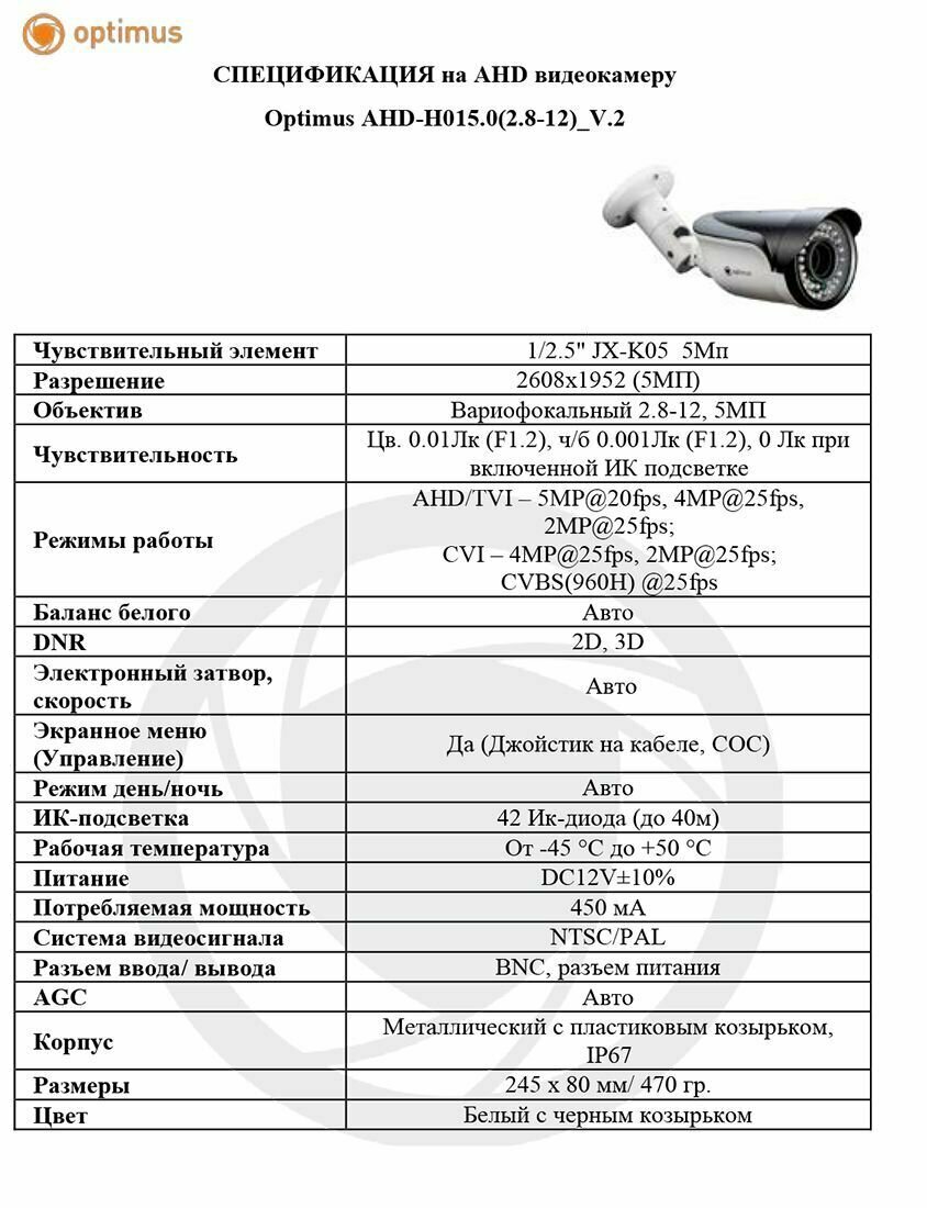 Видеокамера Optimus AHD-H015.0(2.8-12)_V.2