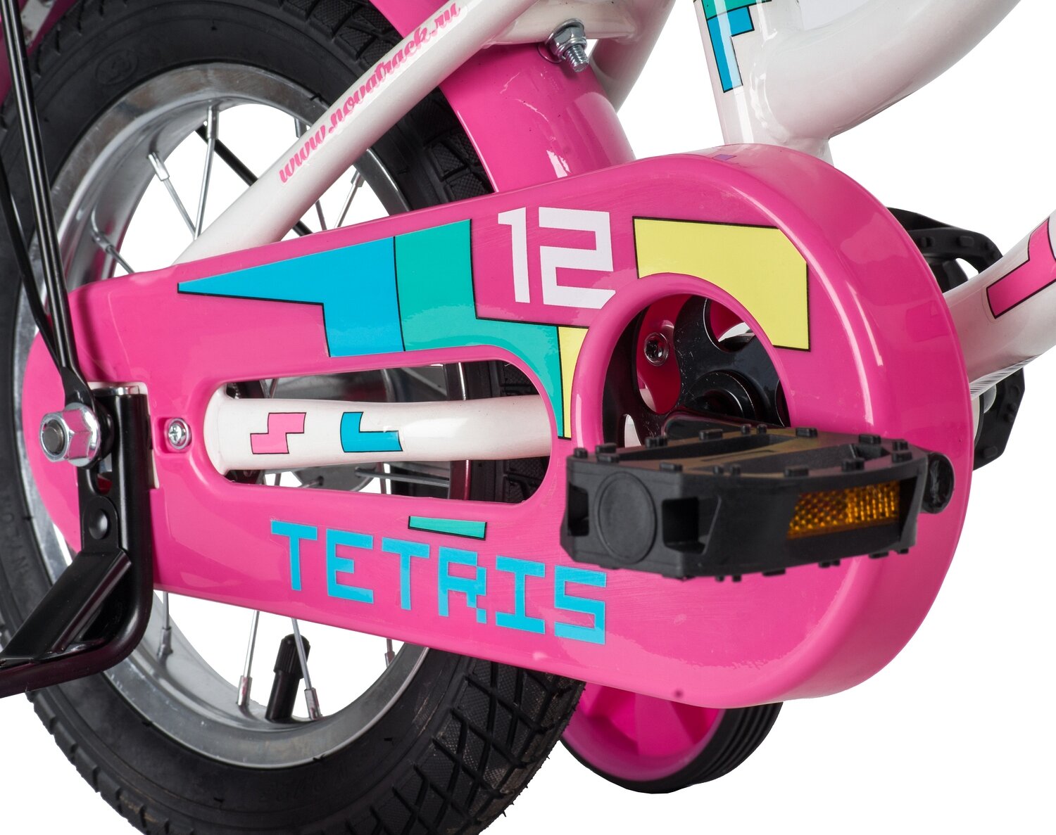Велосипед NOVATRACK 12" TETRIS белый,тормоз нож.,крылья цвет.,багажник чёрный., перед 121TETRIS.WT20