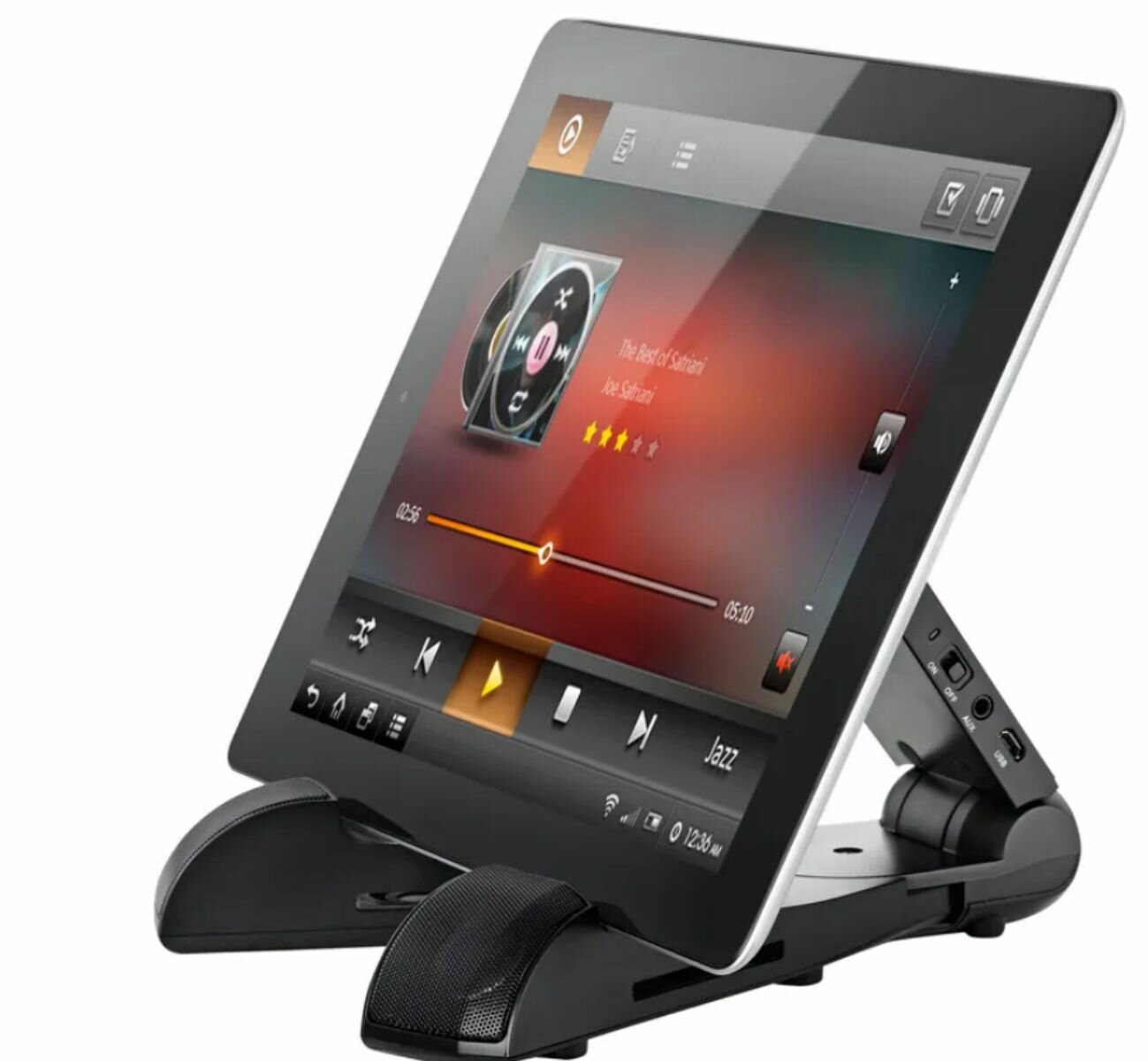 | Плюсы: | Давно мечтал о подставке для планшета с колонками |