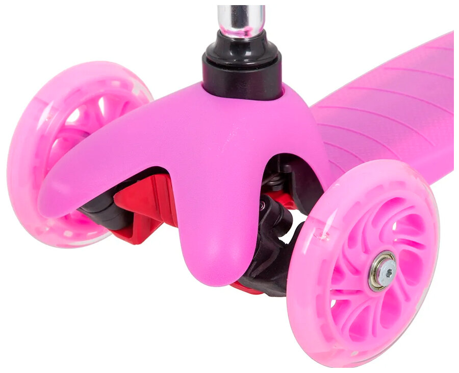 Самокат Novatrack Disco-kids Basic для детей, свет.колеса PU пер.120*24 задн.76*24мм, эргономичный быстросъемный Y-руль с нескладными рукоятями, регулируемый по высоте, черно-розовый