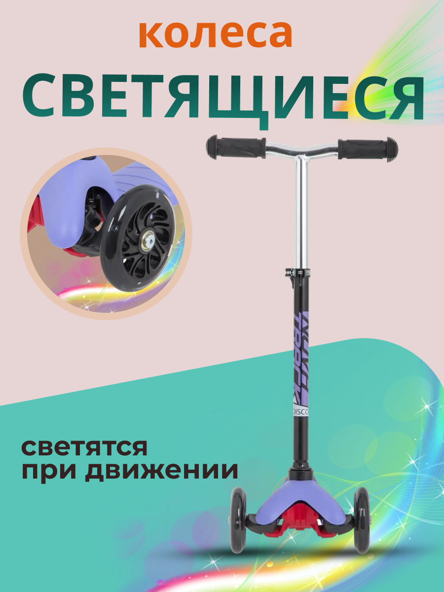 Самокат детский Novatrack Disco-kids Basic, свет.кол. пер.120*24 задн.76*24мм::Фиолетовый 120H.DISCO