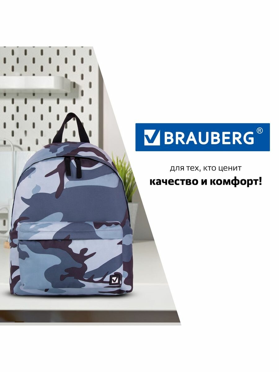 228857, Рюкзак BRAUBERG, универсальный, сити-формат, Серый камуфляж, 20 литров, 41х32х14 см