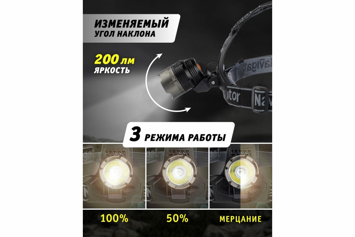 Фонарь налобный NAVIGATOR GROUP Navigator NPT-H08-ACCU CREE 1LEDx5, Вт 3 реж бл акк.3.7В, 2Ач