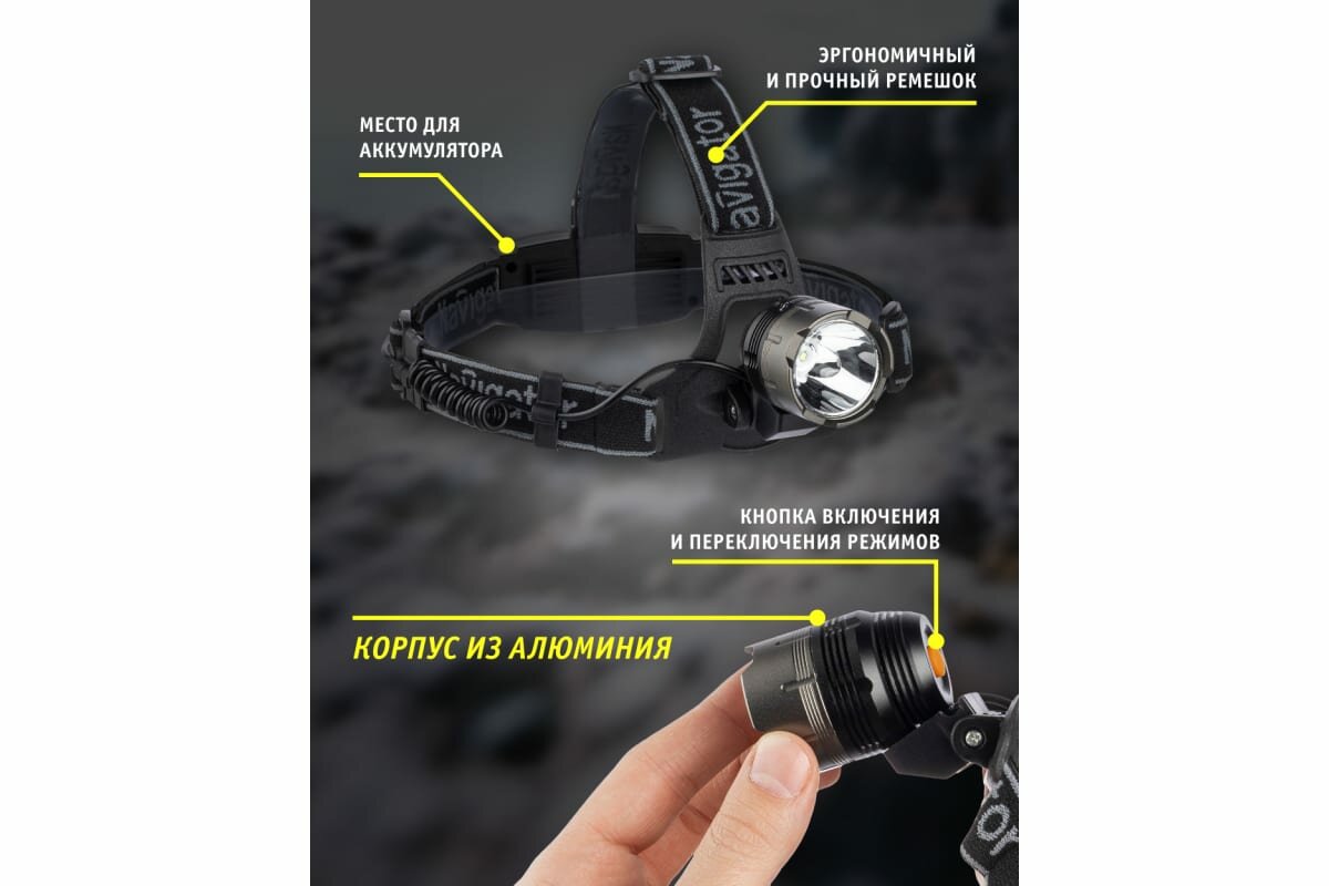 Фонарь аккумуляторный налобный 94 973 NPT-H08-ACCU CREE 1LED 5Вт 3 режима аккум. 3.7В 2А.ч (блист.) NAVIGATOR 94973