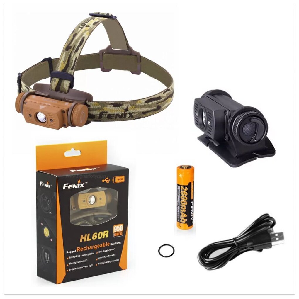 Фонарь налобный FENIX HL60R Desert, желтый, 950 ANSI, IPx8