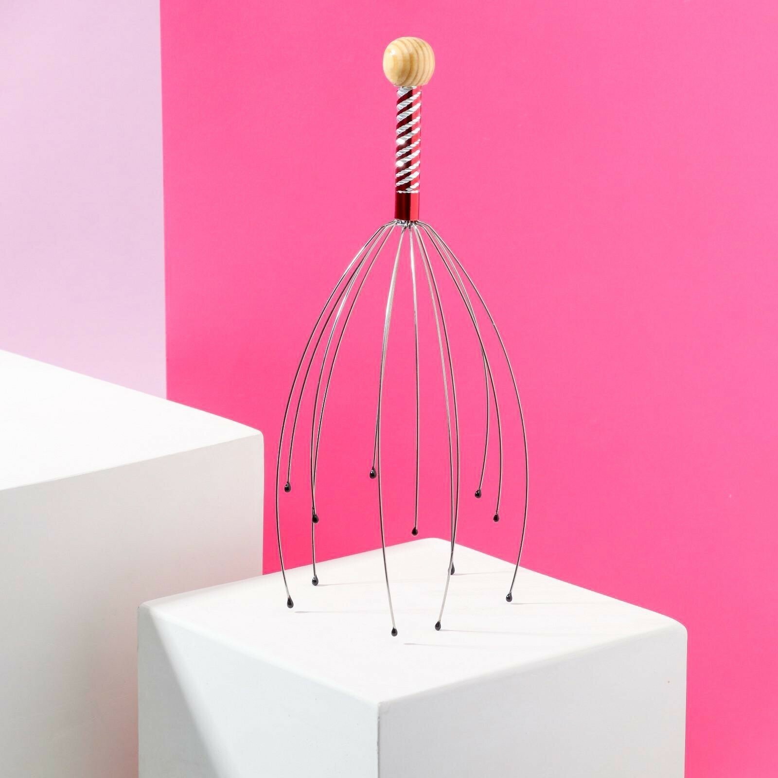 Массажер ручной "Мурашка" для головы, красный