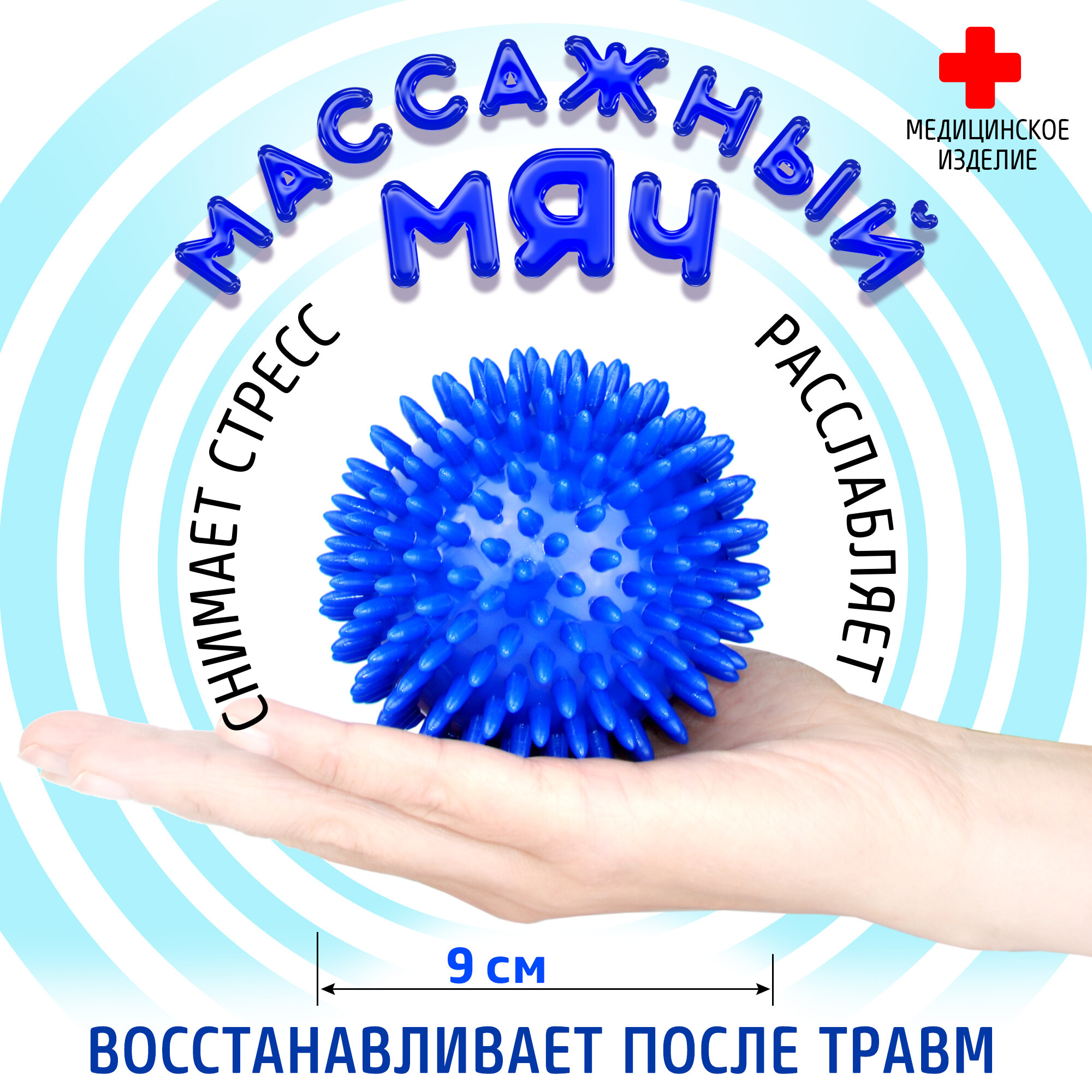Массажный игольчатый мяч Тривес М-109, 9 см, синий