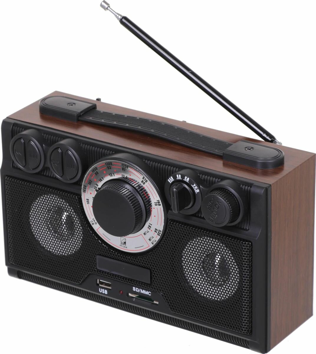 | Отзыв: | Красивый, добротно сделанный приемник. Может работать от сети и от батареек. Шнур электропитания не вмонтирован в корпус, и может включаться и выниматься из специального гнезда на задней стороне панели, что очень удобно при использовании приемника на природе. Корпус сверху задекорирован под дерево. Наверху есть удобная ручка для транспортировки. Приемник весит мало, его легко брать с собой. Звук чистый, флешки и карты считывает быстро, не зависает. В целом мне модель очень понравилась, рекомендую. |