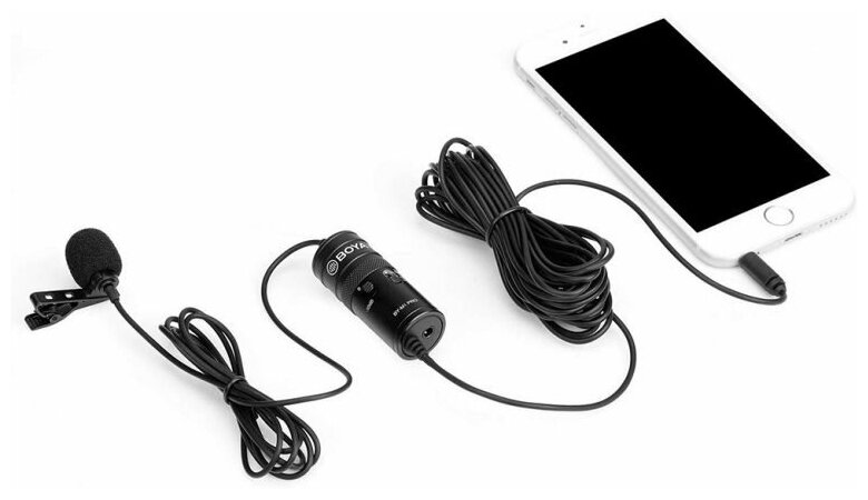Петличный микрофон BOYA BY-M1 PRO, комплектация: микрофон, разъем: jack 6.3 mm, черный, 1 шт