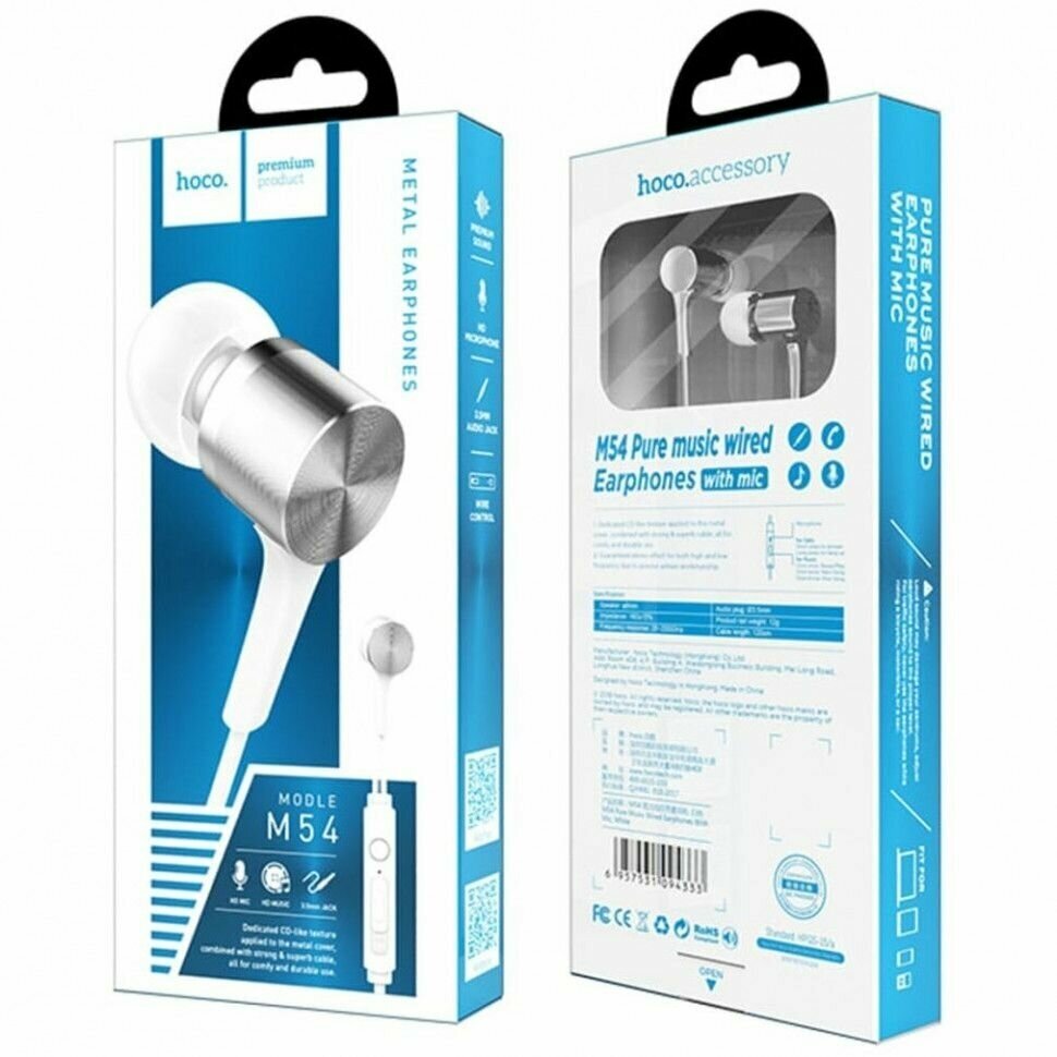 Проводные наушники с микрофоном, внутриканальные, Hoco M54 Pure music, 3.5 Jack, белые