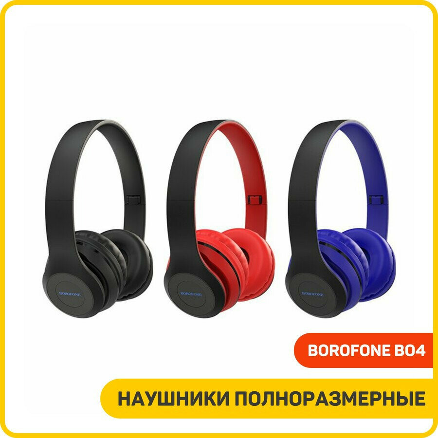 Стереонаушники Bluetooth полноразмерные Borofone BO4 BT5.0/200mAh/5ч красные