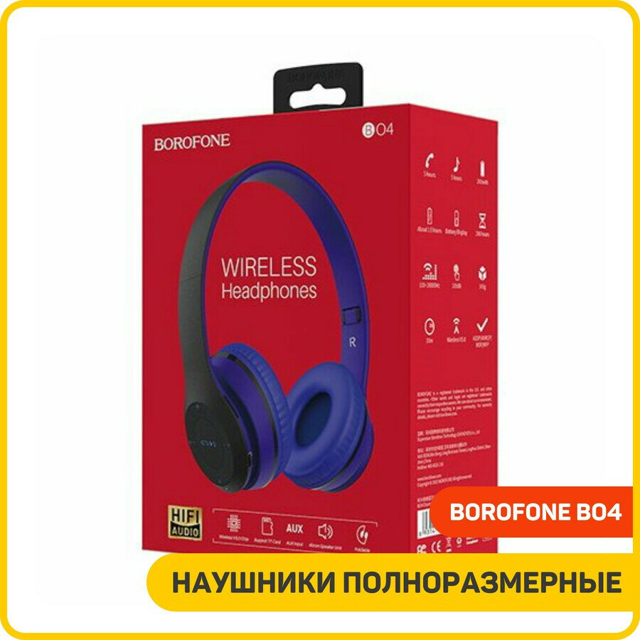Наушники беспроводные Borofone BO4, bluetooth, синие