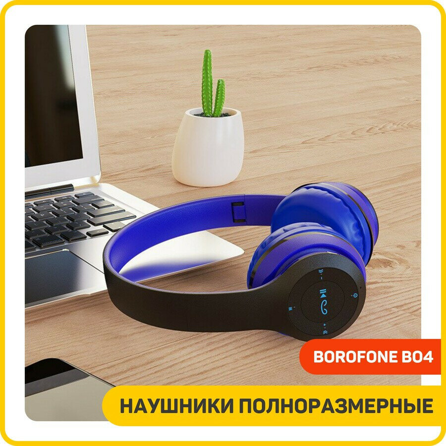 Стереонаушники Bluetooth полноразмерные Borofone BO4, синие