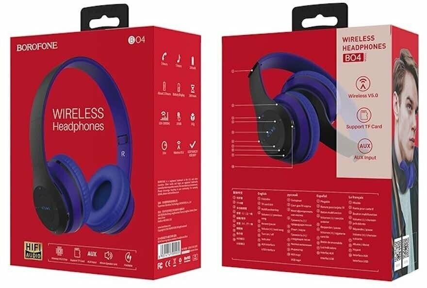 Наушники и гарнитуры Borofone Наушники Borofone BO4 Charming rhyme, беспроводные, накладные, BT5.0, AUX, 200 мАч, синие