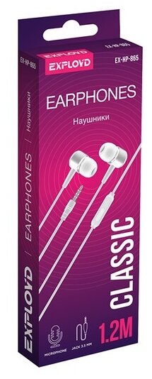 Наушники внутриканальные EXPLOYD EX-HP-865 3.5mm белый 1.2М Classic 2 шт