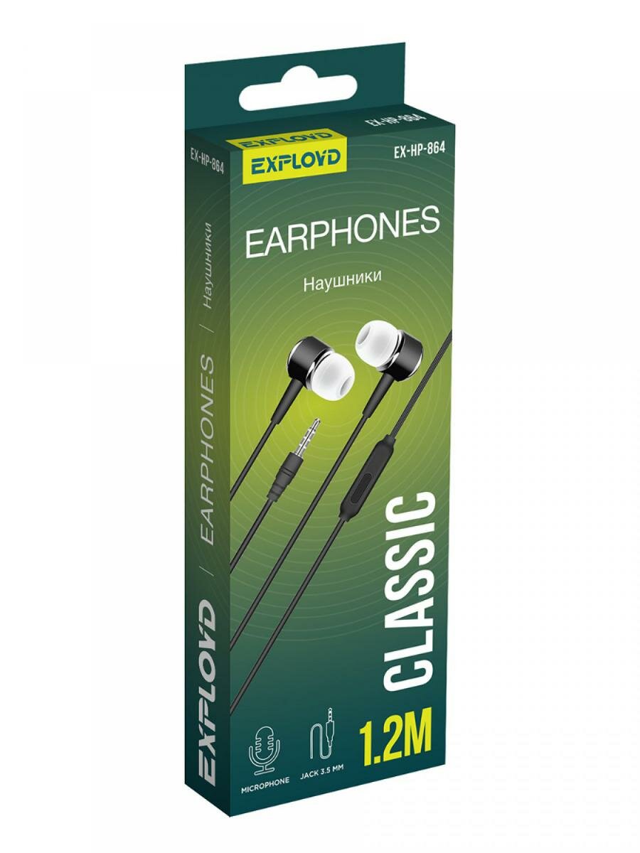 Купить Наушники Exployd EX-HP-864, вакуумные, микрофон, 108 дБ, 32 Ом, 3.5 мм, 1.2м, черные