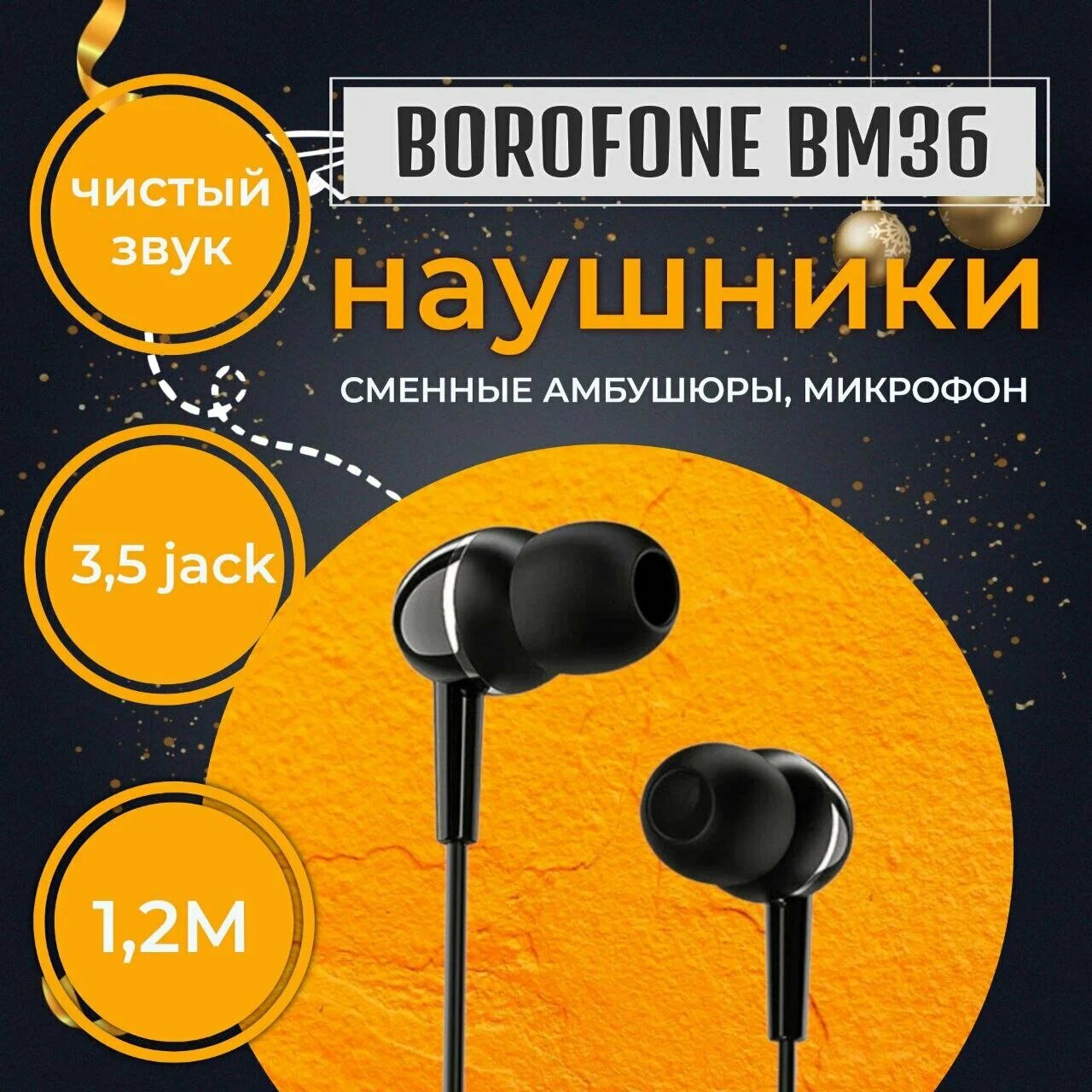Гарнитура BOROFONE BM36 Acura 3.5 мм, вставная, 1.2м (черный)