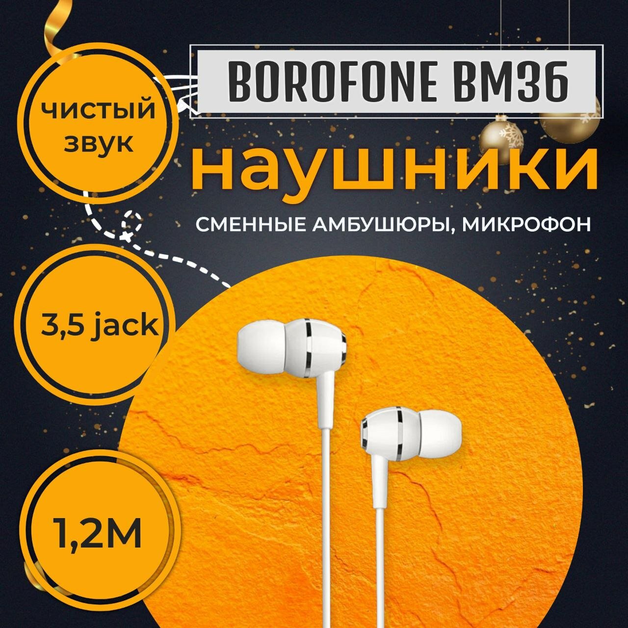 Гарнитура BOROFONE BM36 Acura 3.5 мм, вставная, 1.2м (черный)