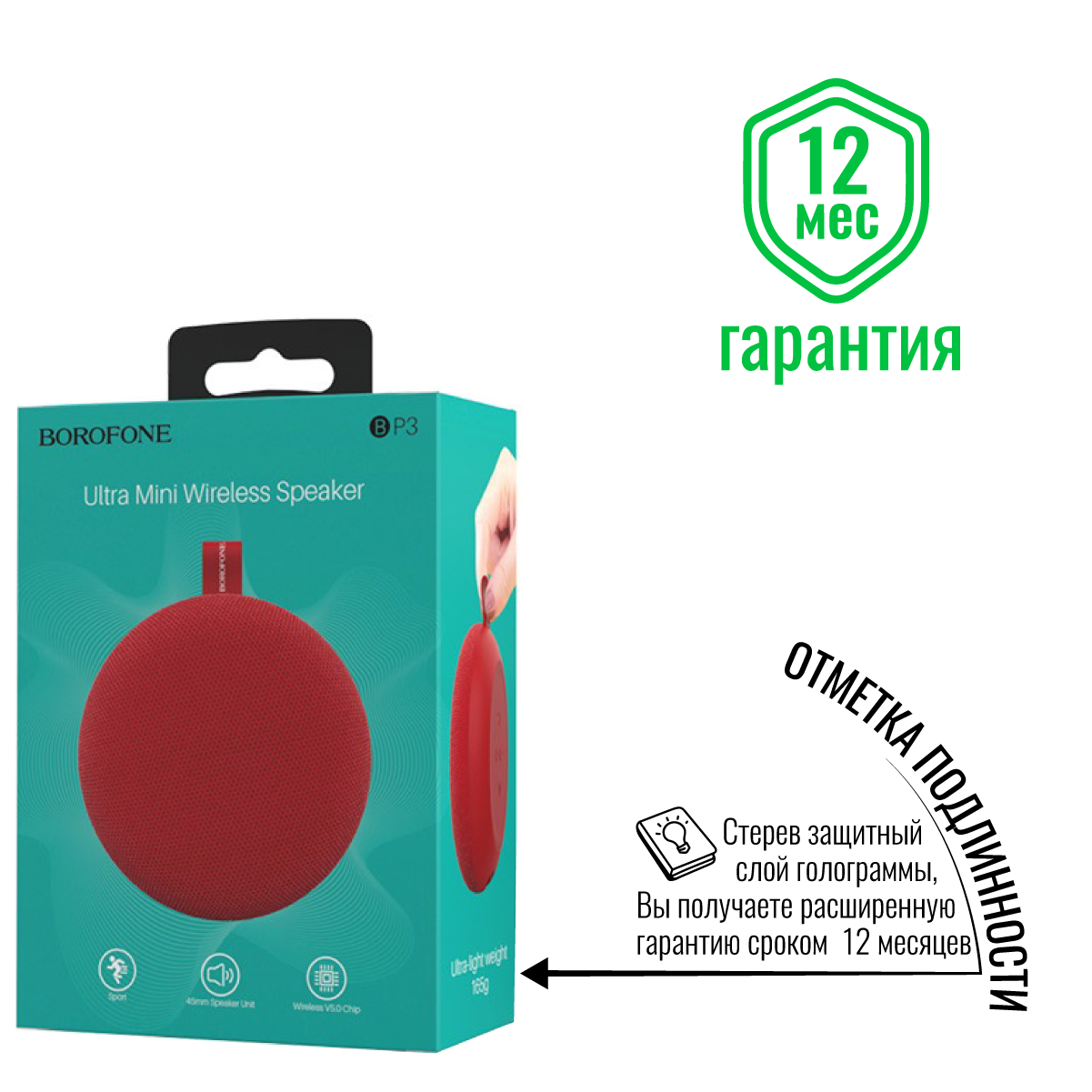 Портативная акустика Borofone BP3, 3 Вт, red интересное: