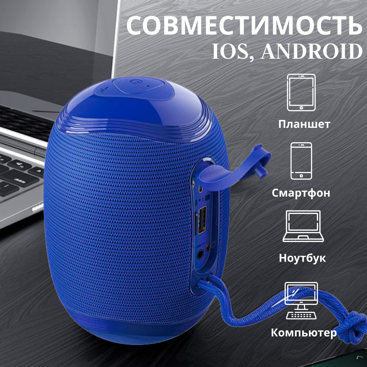 Портативная колонка BR6, 5 Вт, BT 5.0, USB/MicroSD/TWS, синяя