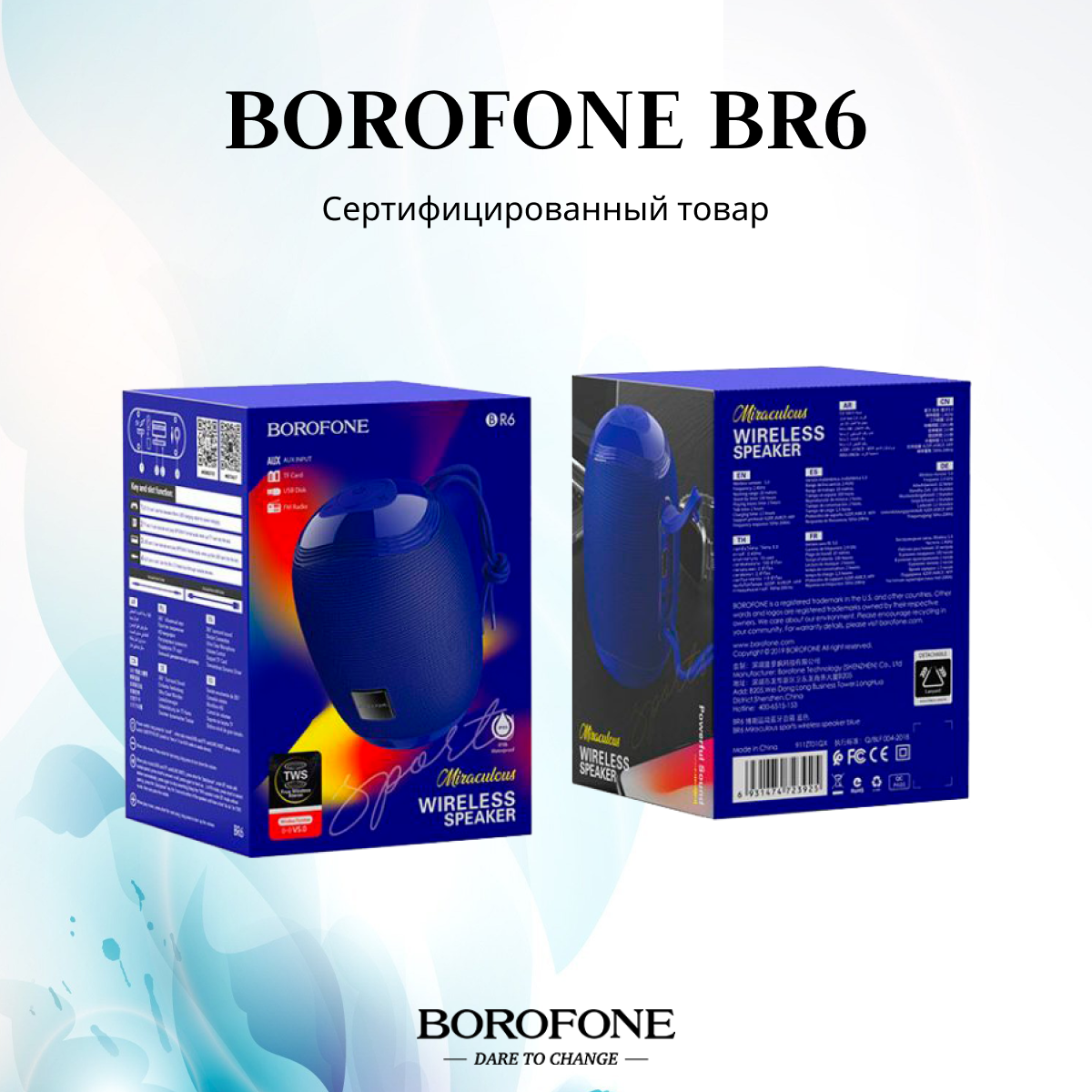 Колонка портативная Borofone, BR6, Miraculous, пластик, Bluetooth, microSD, AUX, цвет: синий