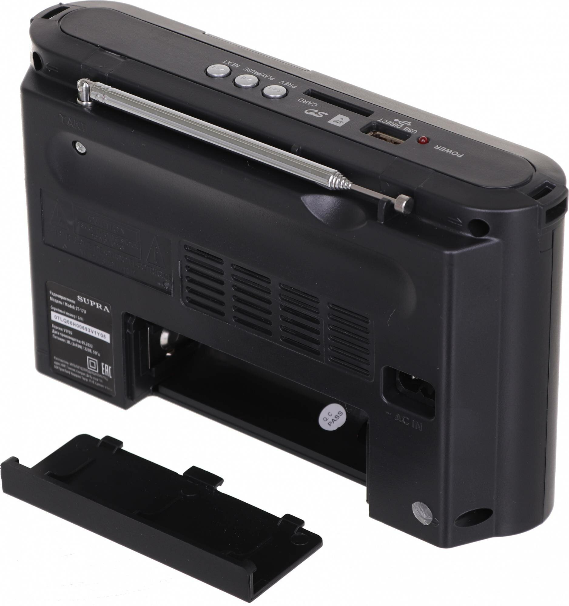 Радиоприемник портативный Supra ST-17U, черный, USB SD