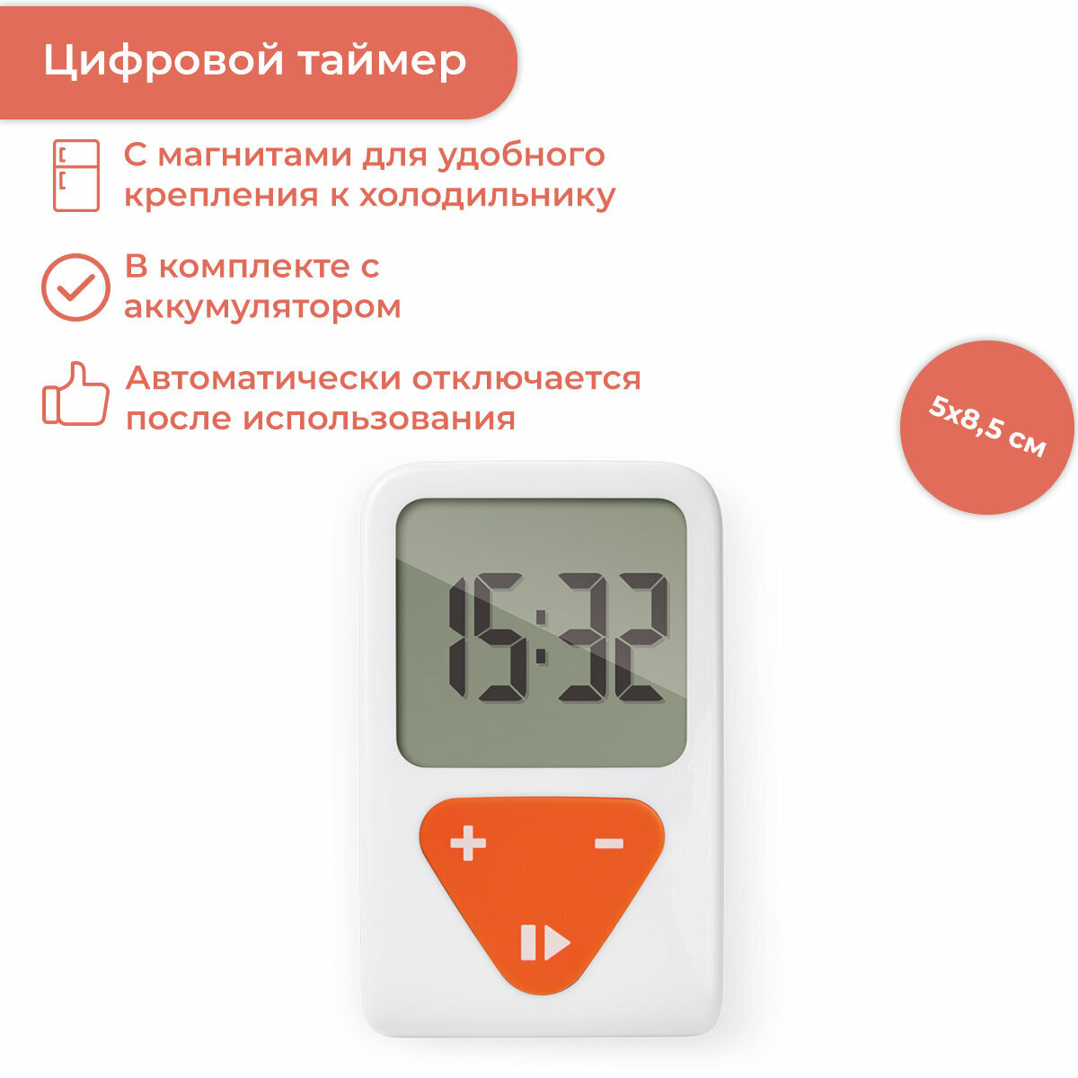 Электронный таймер поворотный NK5260, крепление магнит/скотч, белый