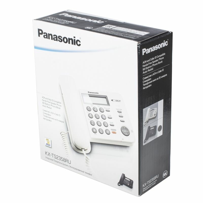 Panasonic KX-TS2358RUW (белый) {АОН,Caller ID,ЖКД,блокировка набора,выключение микрофона,кнопка "пауза"}