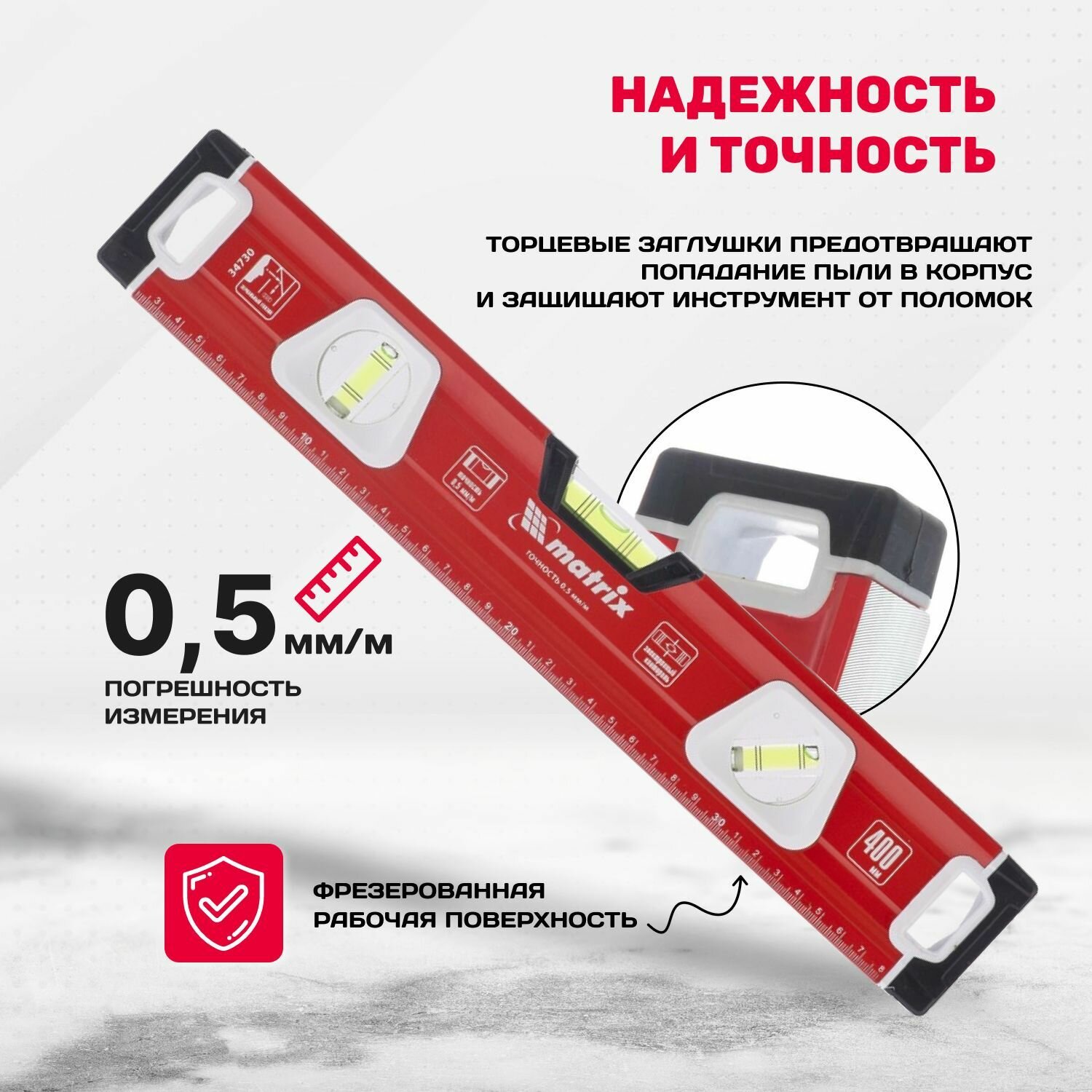 Matrix Уровень алюминиевый, магнит фрезерованный, 3 глазка 400 мм 34730 34730 .