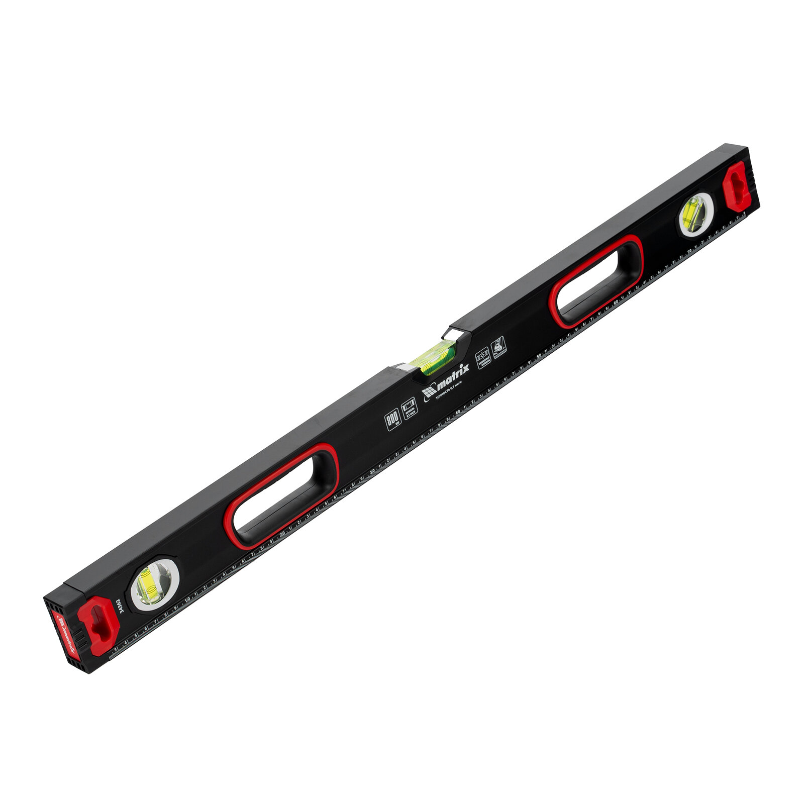 Уровень алюминиевый Matrix усиленный, фрезерованный, 3 глазка, 2 комп. рукоятки, 800 мм 34362