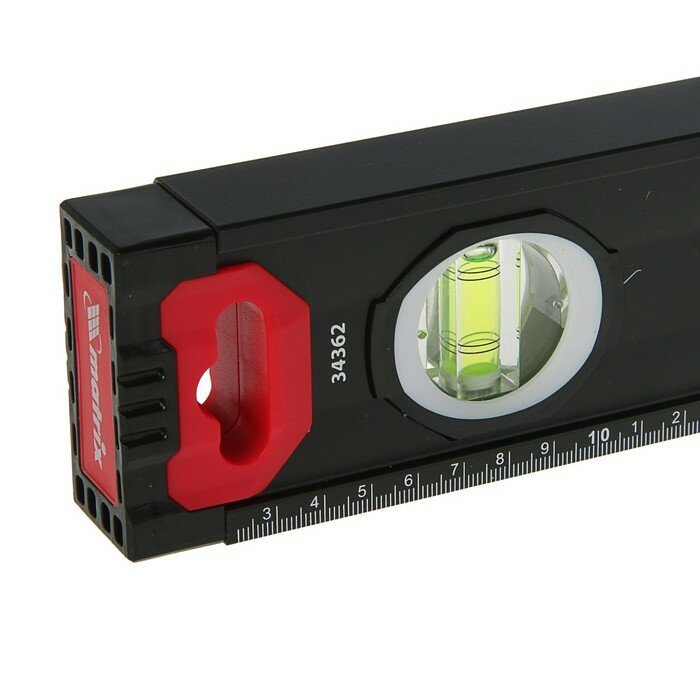 Уровень алюминиевый, усиленный, фрезерованный, 3 глазка, 2 комп. рукоятки, 800 мм, MATRIX 34362